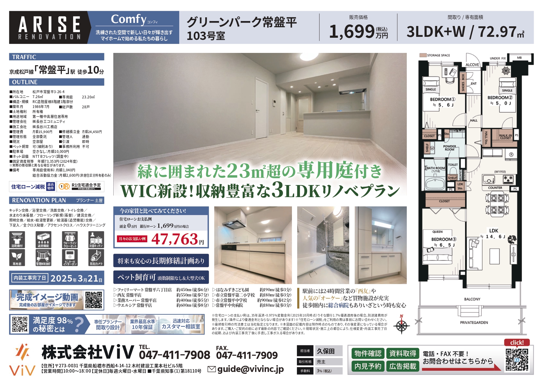 マンション グリーンパーク常盤平103号室 グリーンパーク常盤平103号室 1699万円 公園前に佇む自然豊かな環境! 緑に囲まれた23㎡超!専用庭付き!! 管理体制良好!将来も安心の長期修繕計画有!! 利便性に優れた生活環境も魅力です♪♪