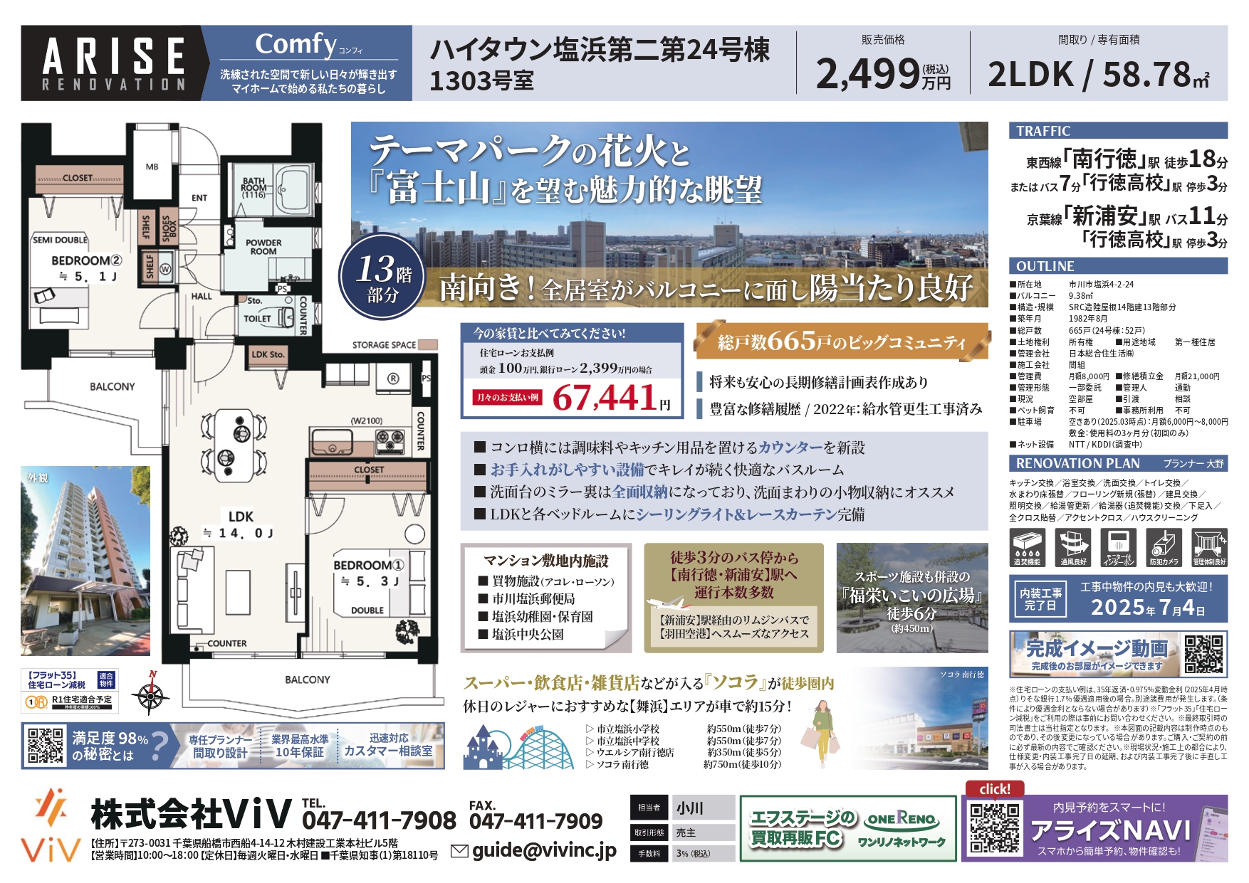 マンション 【SOLDOUT】ハイタウン塩浜第二第24号棟 【SOLDOUT】ハイタウン塩浜第二第24号棟 お陰様でご成約となりました。 ご購入者様の新生活が幸せと笑顔に満ち満ちた毎日でありますように。 ViV inc.
