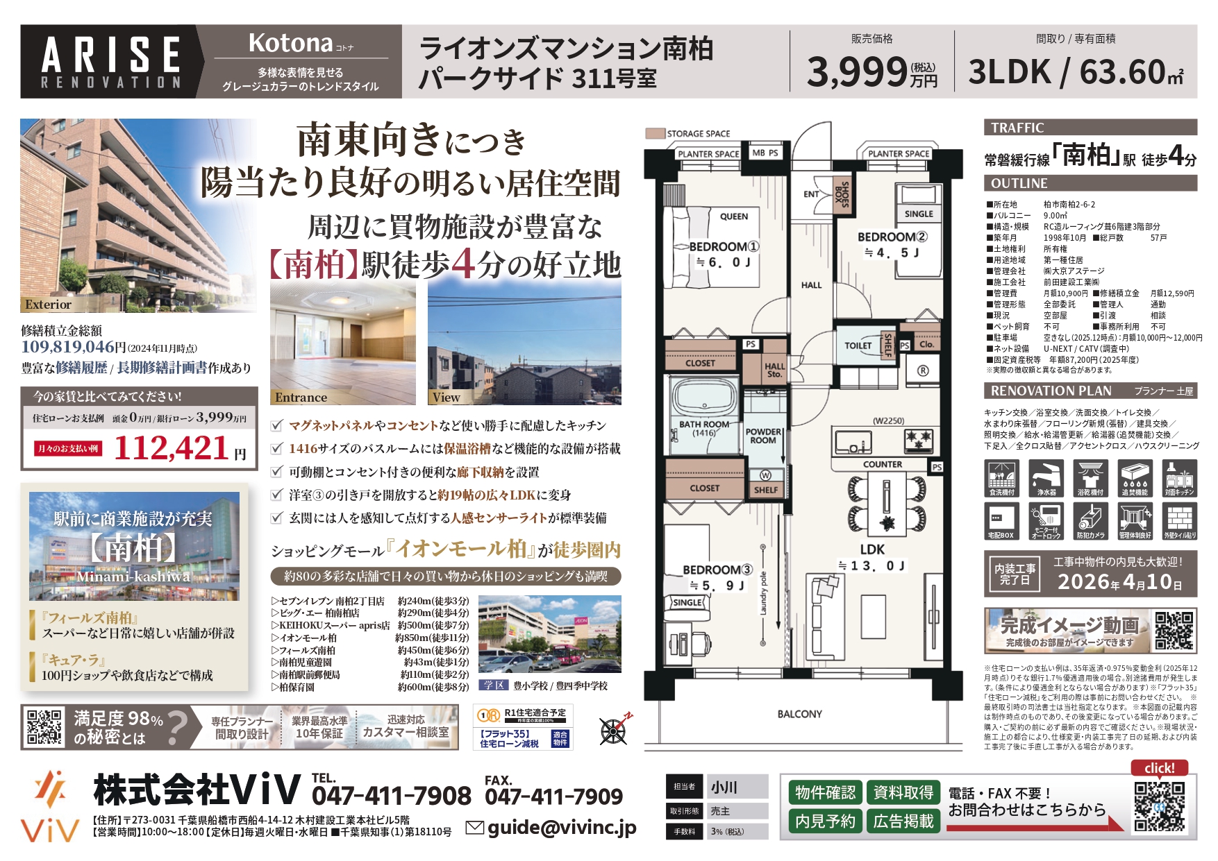 ライオンズマンション南柏パークサイド311号室 3999万円