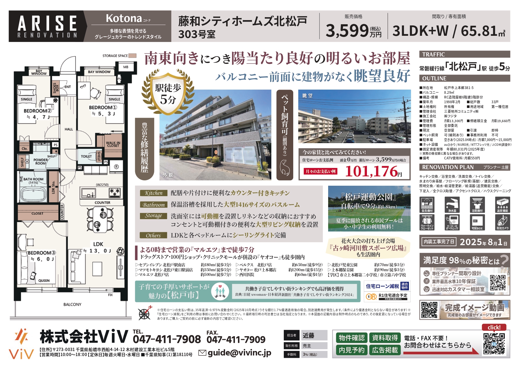 マンション 藤和シティホームズ北松戸303号室 藤和シティホームズ北松戸303号室 3599万円 南東向きにつき陽当たり良好の明るいお部屋☀ 駅から徒歩5分の好立地! 夜0時まで営業の『マルエツ』まで徒歩7分 ドラッグストア・100円ショップ・クリニックモールが併設の『ヤオコー』も徒歩圏内! 子育ての手厚いサポートが魅力の【松戸市】 花火大会の打ち上げ会場『古ヶ崎河川敷スポーツ広場』も生活圏内 『松戸運動公園』自転車で9分! 夏季に解放される市民プールは小・中学生の利用無料!! ペット飼育可♪(細則あり)